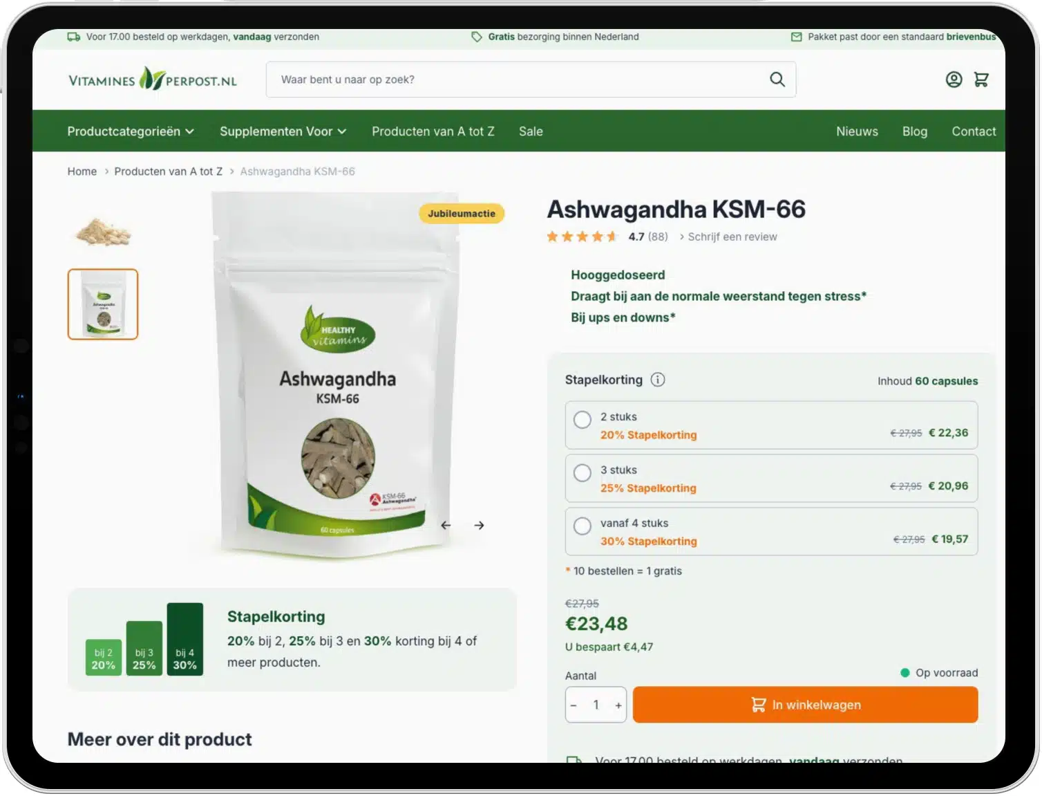 Vitamines Per Post is een toonaangevende webshop in vitamines en voedingssupplementen in Nederland. Met ruim 1 miljoen klanten heeft het bedrijf een sterke marktpositie opgebouwd. De focus ligt op kwaliteit, betrouwbaarheid en scherpe prijzen.